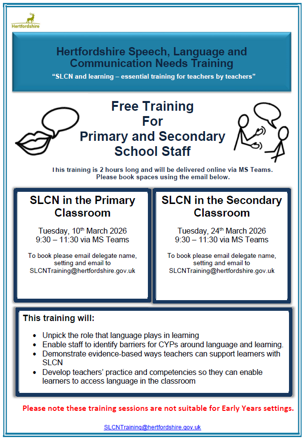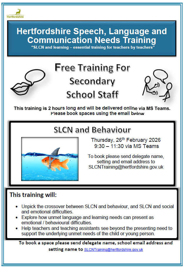 • Secondary School Staff:  SLCN in the Secondary Classroom