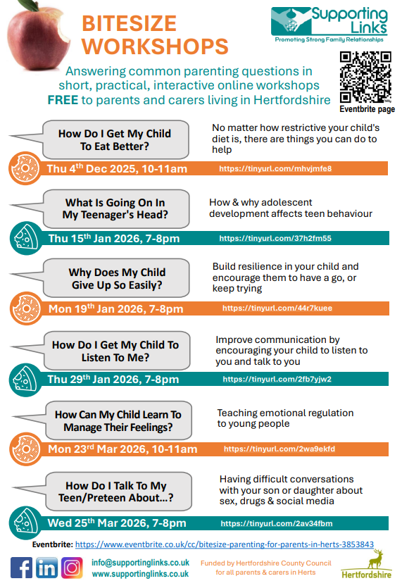 FREE 'Bitesize' workshops - answering common parenting questions in short, practical interactive online workshops.