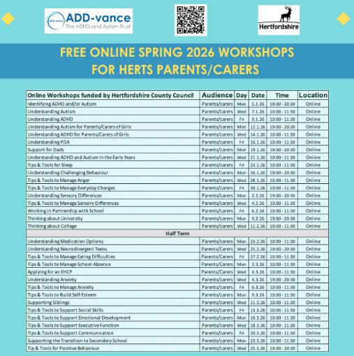 ADD-vance: Spring Parent/Carer Training - open for booking