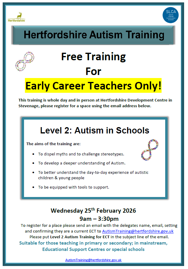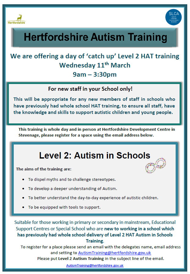 Hertfordshire Autism Training have published their Spring 2026 dates.