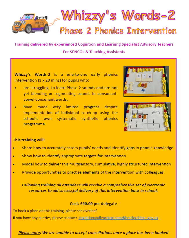 Training for SENCo's and Teaching Assistants in the Spring Term.