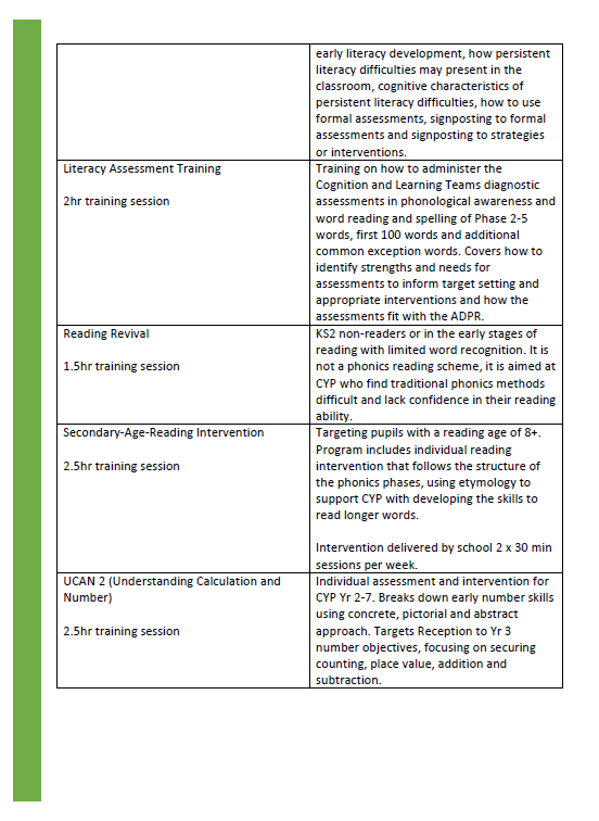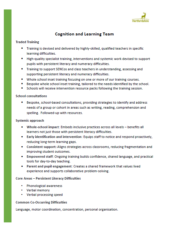 Specialist Traded Cognition & Learning Offer for Schools/Settings (October 2025)