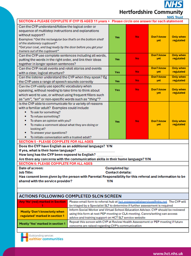 Please note this replaces our usual referral SaLT pathway but only applies to a child or young person who is looked after by Hertfordshire CC. All other children should be referred to the SaLT service using our online referral form on the HCT website.