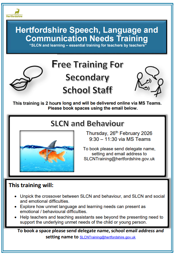 Training offered for professionals. Contact: AutismTraining@hertfordshire.gov.uk for more information.