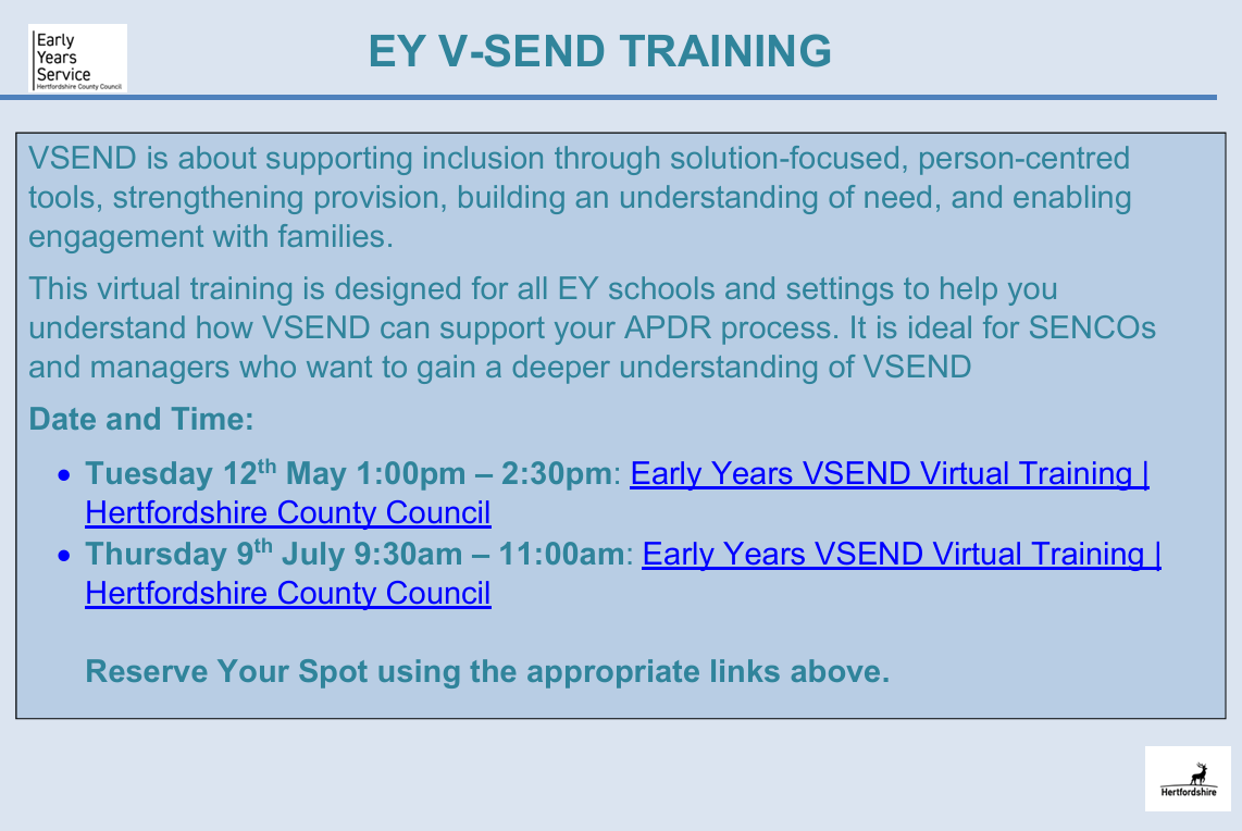- Initial Contact: A member of the Early Years SEND team will contact all receiving settings in September to set up a brief consultation call. School staff do not need to complete an application or referral process.