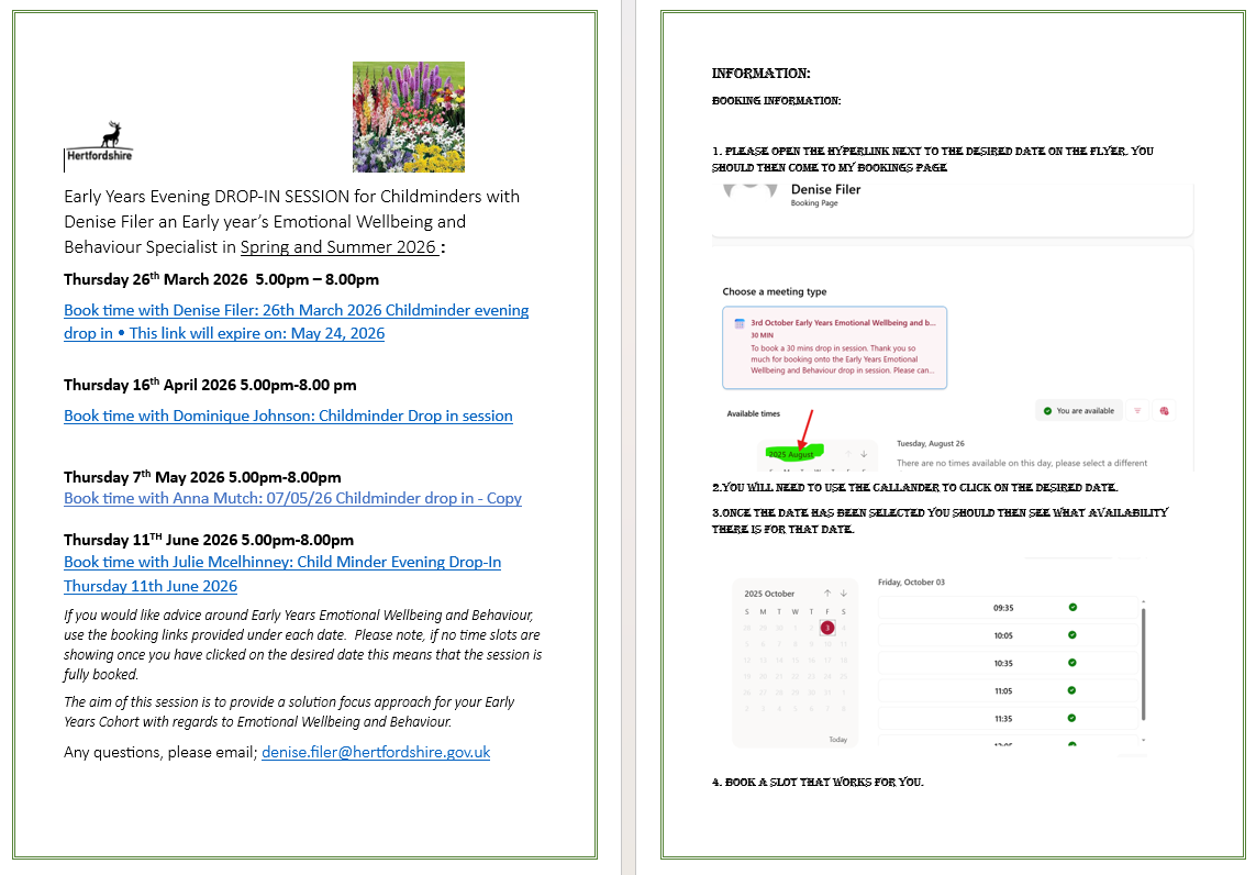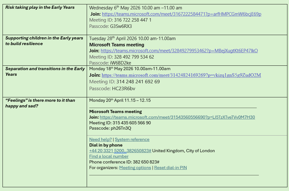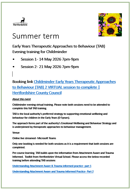 Early Years Service: drop-in sessions and TAB training for Childminders (click to open)