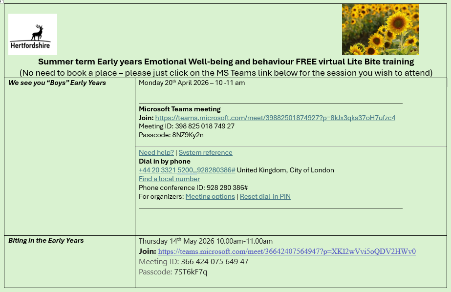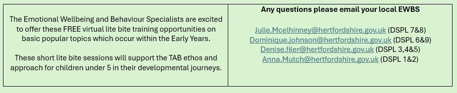 Early Years - Emotional Wellbeing and Behaviour FREE virtual Lite Bite Training
