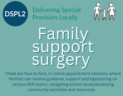 Booking now open - Family Support Surgeries on Thursday 26 March 2026 (9.15am-12pm) - booking is essential, via DSPL2 Eventbrite