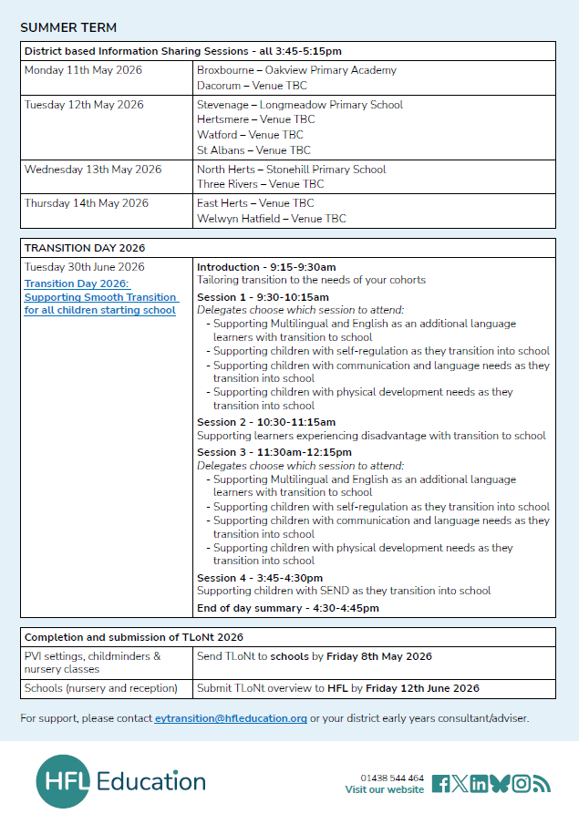 HCC funded Early Years Supporting Smooth Transitions 2025/26 Training